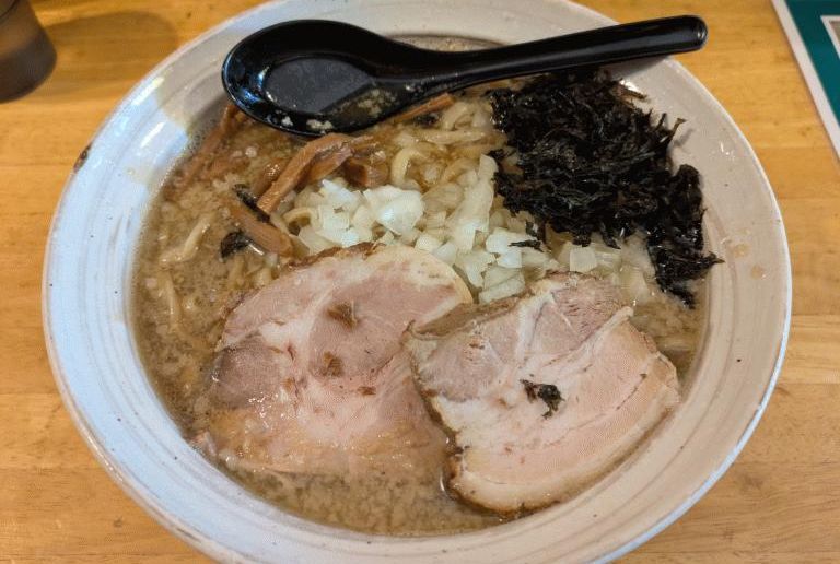 ムタヒロ (東京都昭島市美堀町5-21-2 пF042-519-2242) HP 国分寺に本店を持つ15店舗ほどを展開するチェーン店の拝島店。チェーン店と言っても同じメニューを提供しているのではなく、それぞれのお店で違うようです。この拝島店は拝島駅の建物内にあり、西武拝島線の改札口の前あたりにあります。駐車場はありませんし駅の中ですから、電車での利用が便利だと思います。近くにはコインパーキングもあります。自販機で食券を購入します。 |